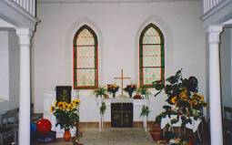 Stil eingebaut. Am 17. Mai 1818 wurde das neue Kirchenschiff geweiht. Den Kirchenraum überspannt eine hölzerne Tonnendecke. Der Fußboden ist mit Backsteinen