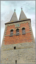 das jüngste Teil des Kirchengebäudes. Im Jahr 1907 wurde der alte Turm mit Ziegelmauerwerk erhöht, die Doppelspitze