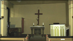 mit Schiefer gedeckt, sowie Kreuz und Wetterfahne errichtet. Die gesamte Kirche - einschließlich Turm - wurde 1907 mit einem Spritz- oder Kratzputz